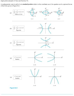 single points and pairs of lines (see Exercise 15). A nondegenerate conic is said to be in standard position relative to the coordinate axes if its equation can be expressed in one of the forms given in Figure 9.6.1. Figure 9.6.1