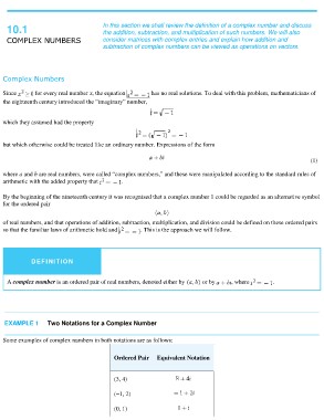 10.1 In this section we shall review the definition of a complex number and discuss