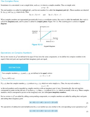 Just as two vectors in are defined to be equal if they have the same components, so we define two complex numbers to be