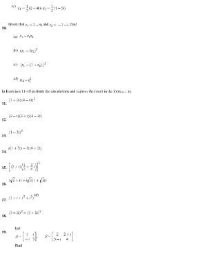 (c) , Given that and , find 10. (a) (b) (c) (d) In Exercises 11–18 perform the calculations and express the result in the form . 11. 12. 13. 14. 15. 16. 17. 18. Let 19. Find