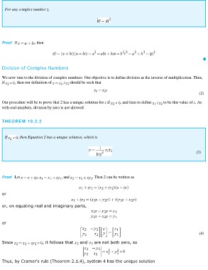 We now turn to the division of complex numbers. Our objective is to define division as the inverse of multiplication. Thus,