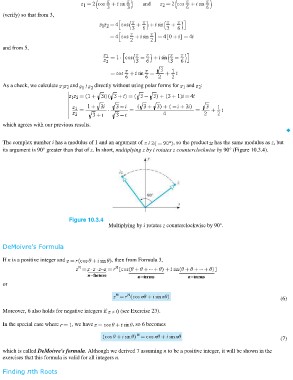 its argument is 90° greater than that of z. In short, multiplying z by i rotates z counterclockwise by 90° (Figure 10.3.4).
