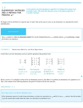 EXAMPLE 1 Elementary Matrices and Row Operations
