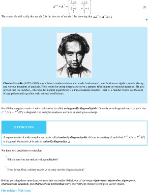 A square matrix A with complex entries is called unitarily diagonalizable if there is a unitary such that