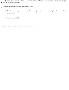 Use Exercises 20 and 21 to show that an matrix is unitary if and only if its columns form an orthonormal set in