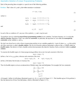 of Example 1 define the half-planes illustrated in parts (a), (b), (c), and (d) of Figure 11.3.1. The feasible region of this problem is