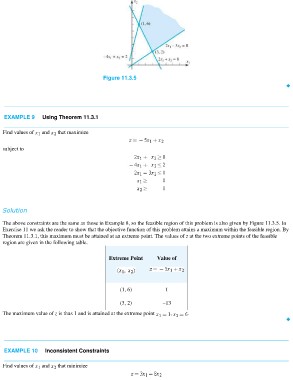 Theorem 11.3.1, this maximum must be attained at an extreme point. The values of z at the two extreme points of the feasible