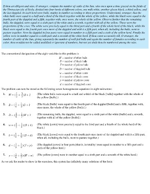 white bulls were equal to a half and a third of the black together with the whole of the yellow, while the black were equal to the