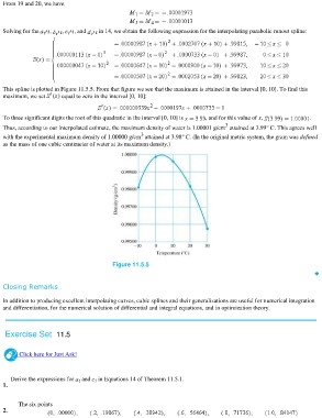 This spline is plotted in Figure 11.5.5. From that figure we see that the maximum is attained in the interval [0, 10]. To find this