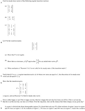 Find the steady-state vectors of the following regular transition matrices: