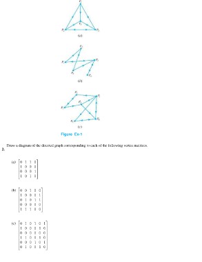 Figure Ex-1 Draw a diagram of the directed graph corresponding to each of the following vertex matrices. 2. (a) (b) (c)