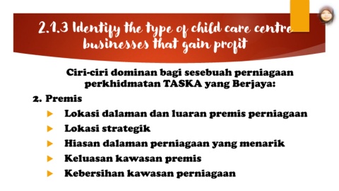 2.1.3 Identify the type of child care centre