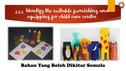 Identify the suitable furnishing and 2.2.3 equipping for child care centre Bahan Yang Boleh Dikitar Semula