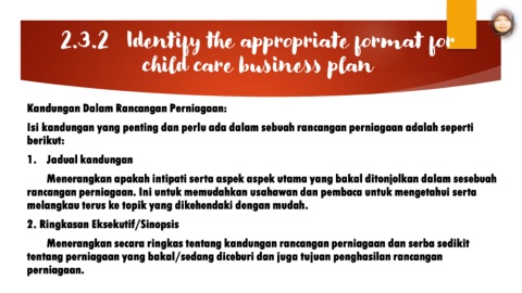 Menerangkan secara ringkas tentang kandungan rancangan perniagaan dan serba sedikit