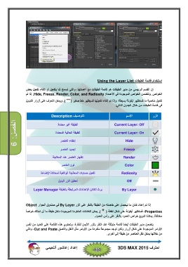 الخواص .وتتضمن الخواص الموجودة في الأعمدة .Hide, Freeze, Render, Color, and Radiosity :إذا تم