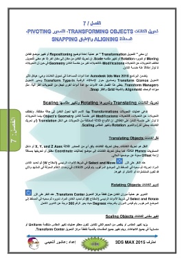 الفصل7 : تحريك الكائنات Translatingوتدويرھا Rotatingوتغيير مقاسھا Scaling