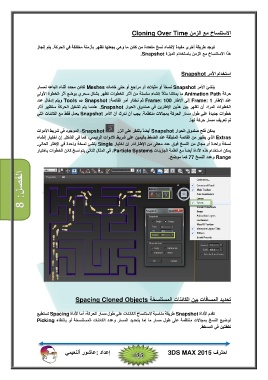 تقدم الأداة Snapshotطريقة مناسبة لاستنساخ الكائنات على طول مسار الحركة ،أما الأداة Spacingتستطيع