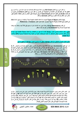 في القسم ،Array Dimensionsيمكننا تعيين عدد الكائنات المراد نسخھا وفق ثلاثة أبعاد مختلفة .كما يمكننا