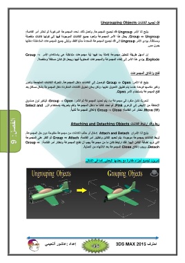التي نريد إضافة الكائن إليھا .لفك ارتباط كائن ما من مجموعة يجب أن نفتح المجموعة ونختار أمر القائمةGroup ⇒ :