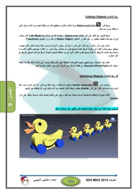 الفصل9 : ابنان وأب واحد فإن النقر على الزر Unlinkيحطم ارتباط الكائن المحدد مع الأب ولكن ليس الارتباطات مع الابنين.