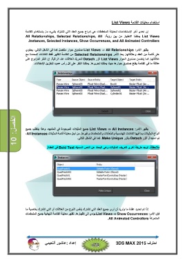 الفصل10 : يظھر الأمر List Views ⇒ All Instances :جميع المثيلات الموجودة في المشھد ،وھذا يتطلب جميع