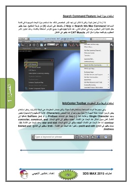 المساعدة Help ⇒ Search 3ds Max Commandأو بالضغط على الحرف ) (Xمن لوحة المفاتيح ،حيث يظھر