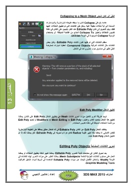 للكائن الأصلي .لا يمكننا مثلاً تغيير القيمة Radiusلكائن كرة تم تحويله إلى ،Editable Polyلكن يمكننا ذلك إذا تم