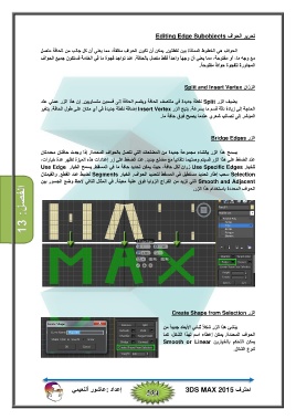 يضيف الزر Splitنقطة جديدة في منتصف الحافة ويقسم الحافة إلى قسمين متساويين .إن ھذا الزر عملي عند