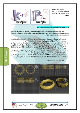 ،Extruded Donut Shapeإذا أردنا أن يكون للخاتم مقطعاً فريداً فسيكون ال ُم َع ّدلان Bevel and Bevel Profile