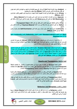 الفصل17 : ملاحظة :من أجل المواد الواقعية ،Realistic Materialsواختيارنا للألوان يعتمد إلى حد كبير على أضواء المشھد.