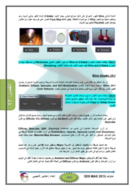 الفصل17 : ملاحظة :يختلف استخدام الخياران Wire or 2-Sidedعن خيار الإظھار الشبكي Wireframeفي المساقط ،حيث أن
