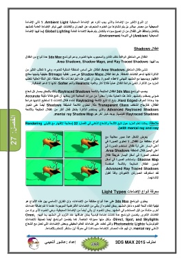 جداً وحادة الحواف .Hard Edgedيتيح لنا تتبع الأشعة Raytracingإنشاء ظلال للكائنات لا تستطيع إنتاجھا خرائط