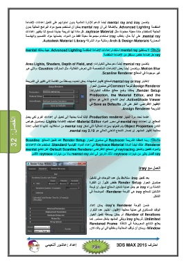 المتقدمة .Advanced Lightingبالإضافة إلى أن mental rayيمكن أن تستخدم جميع مواد البرامج الحالية بدون