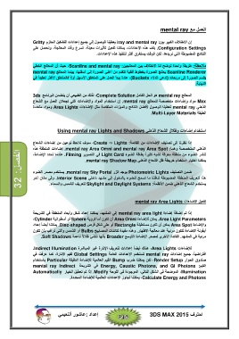 Maxمواد وإضاءات متخصصة للمعالج .mental rayإن استخدام المواد والإضاءات التي تجعلان العمل مع الشعاع