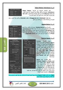 ملاحظة :يسبب الخيار Spawn Trailsتوليد كل جزيئة لجزيئة جديدة عند كل إطار .يمكن لھذا الخيار أن ينشئ بسرعة