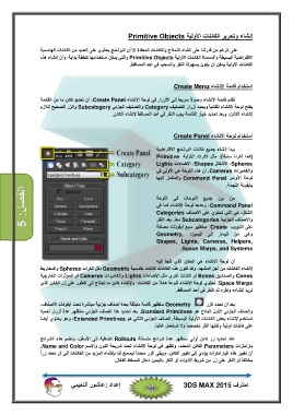 الافتراضية البسيطة والمسماة الكائنات الأولية Primitive Objectsوالتي يمكن استخدامھا كنقطة بداية .وان إنشاء ھذه