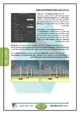الزر Pick Nodeوتحديد احدى الطواحين .بعد ذلك تم ضبط القيمFocal Range: 100, Focal Limit: 200, /
