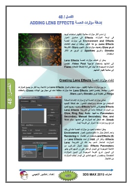 الأخرى مجتمعة .يتضمن الخيار Lens Effectsعدة مؤثرات مختلفة تمتد في مجال بين الھالات Glowsوالحلقات