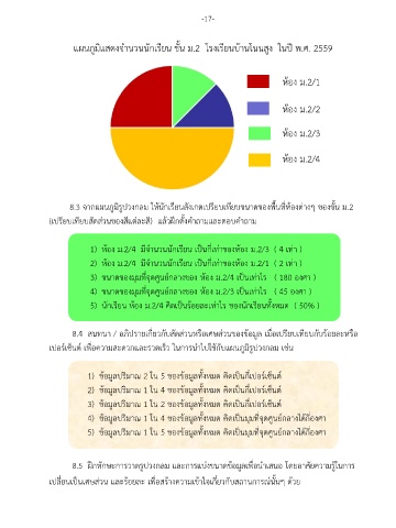 8.3 จำกแผนภูมิรูปวงกลม ให้นักเรียนสังเกตเปรียบเทียบขนำดของพื้นที่ห้องต่ำงๆ ของชั้น ม.2