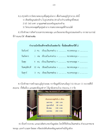 8.4 ฝึกทักษะกำรสร้ำงแผนภูมิรูปวงกลม จำกข้อมูลที่น ำเสนอในรูป 3D Album CS ระบำยสีให้