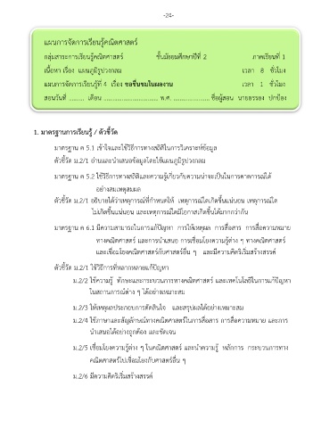 แผนกำรจัดกำรเรียนรู้คณิตศำสตร์