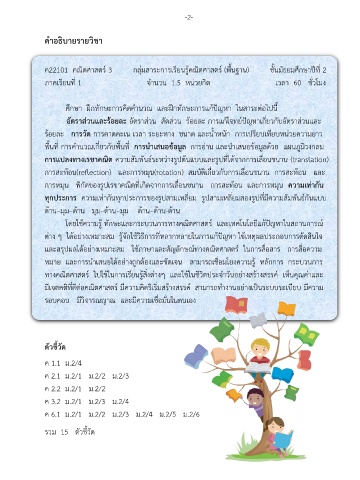 ค22101 คณิตศำสตร์ 3 กลุ่มสำระกำรเรียนรู้คณิตศำสตร์ (พื้นฐำน) ชั้นมัธยมศึกษำปีที่ 2