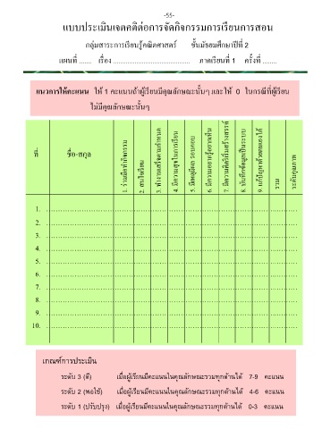ระดับ 2 (พอใช้) เมือผู้เรียนมีคะแนนในคุณลักษณะรวมทุกด้านได้ 4-6 คะแนน