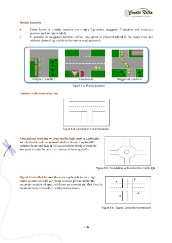 Three forms of priority junction are simple T-junction, staggered T-junction and crossroad