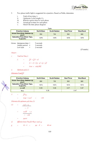 3. Two phase traffic light is suggested for a junction. Based on Table, determine