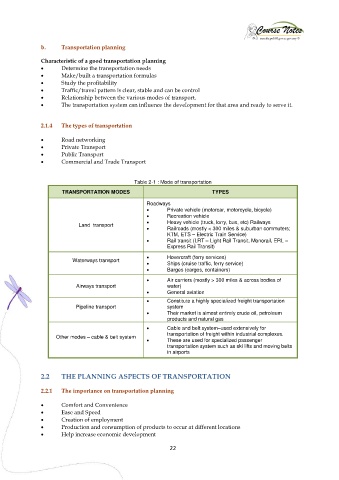2.2 THE PLANNING ASPECTS OF TRANSPORTATION