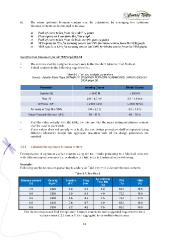 iii. The mean optimum bitumen content shall be determined by averaging five optimum