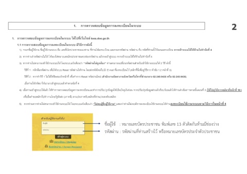 1) กรอกชือผู้ใช้งาน ชือผู้ใช้งานระบบ คือ เลขทีบัตรประชาชนของท่าน ทีท่านใช้ลงทะเบียน และกรอกรหัสผ่าน รหัสผ่าน คือ รหัสทีท่านตั งไว้ตอนลงทะเบียน หากเข้าระบบไดใหข้ามไปทําข้อท 4