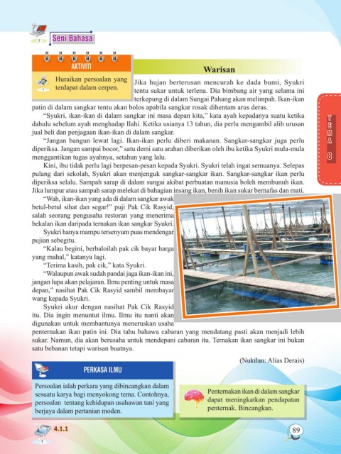 pulang dari sekolah, Syukri akan menjenguk sangkar-sangkar ikan. Sangkar-sangkar ikan perlu