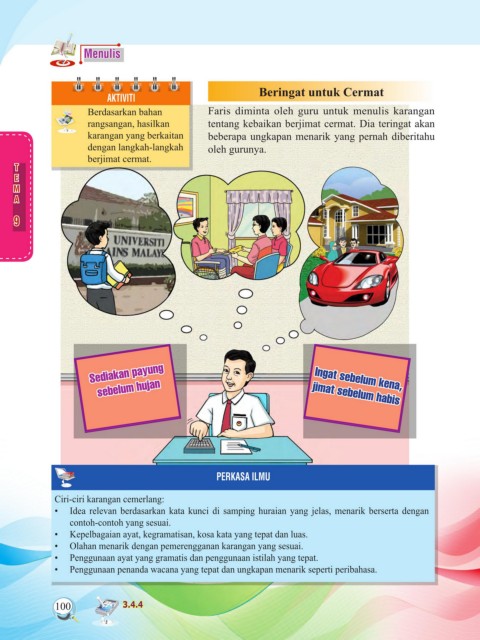 • Penggunaan penanda wacana yang tepat dan ungkapan menarik seperti peribahasa.